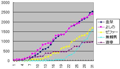 | 1位 | 血祭 | 2543 | 1050戦 631勝(61%) | 84度(8%) | 10戦 3勝(30%) |