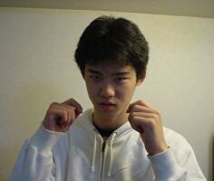 野村君の新パンチにより福嶋君の重心が崩れる。