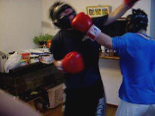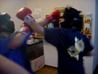 体を基礎運動で温めたらすぐに小島君とスパー。