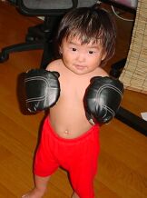 寝室に置いてある実物大辰吉の映画宣伝用立て看板に向かって久々に構える。