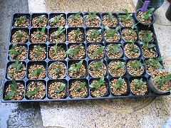 トレーがいっぱいです。小苗は2苗を1つの鉢