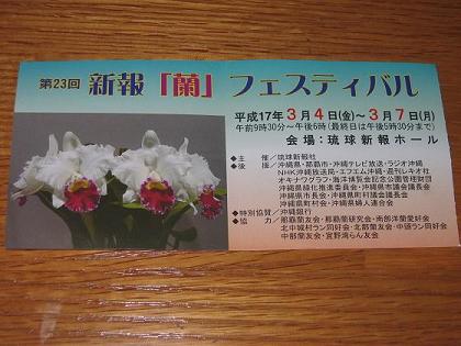 2005年3月4日(金)から7日(月)まで、沖縄県那覇市「琉球新報ホール」にて蘭展が開催されました。新聞社主催の蘭展です。今回は完全室内での展示のため、ほとんどがフラッシュ撮影となりました。なにとぞ御了承ください。しかし「ビオス蘭展」や「海洋博蘭展」とは異なる品種の出品も多々あって、個人的に非常に興味ある蘭展でした。フラッシュ撮影のため実際の色彩とはほど遠い画像ですが、沖縄県の蘭展をお楽しみいただければ幸いです。