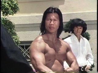 代名詞のヤン・シーの肉体美(右上の画像)、カラテ使いの必殺技が、