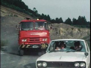 犯人と父親とGメンを乗せたタンクローリーを追って、