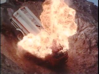 田口刑事のカーチェイスを前面に出した作品だから、冒頭からカーチェイスが始まっている。 さらに車が燃え上がるシーンは、ガソリンのタンクローリーらしく"猛烈”な火炎に包まれており、非常に迫力のある演出となっている。