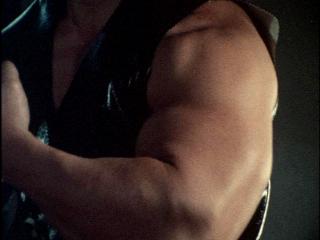 ヤン・シーの太い腕 → → → 太い腕にも、杏子は動じない 女カラテ使いは、卑劣にも仕込み靴を使う