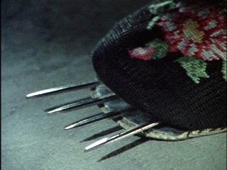 女カラテの沙は、 「靴に刃物を仕込んだ武器 (最下段の右の画像) 」 で、吹雪刑事に
