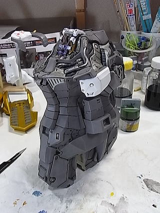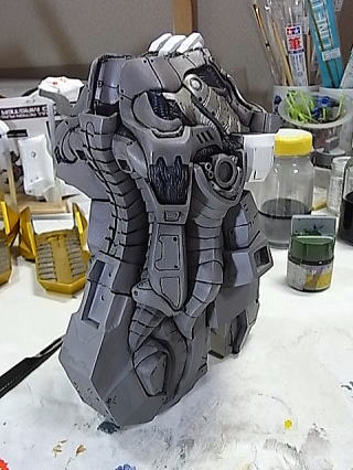 スミ入れも上半身パーツに入ってきました。