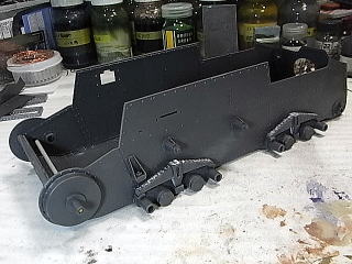 面倒なのは貼り合わせが有るマフラー部分と最後部のスモークキャンドルの箱?