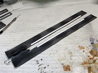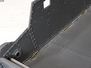 側面の上側にはプラ板を貼らず、フレームのモールドに沿って真鍮棒を貼り、