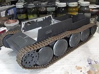 ギヤボックスとか仕込む積りも無いので、転輪部を仮付けしつつ、