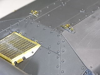 その後、エッチングパーツの取付(補強?)リブを接着していきますが、