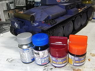 (昔作ったクレオス製クリアー赤と青を1:1で混ぜたやつ、
