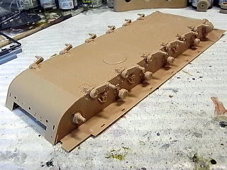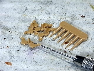 本体への軸打ち(履帯はプラなので半分の3ヶ所)、