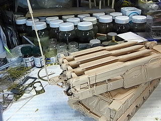 発射台本体部の貼り合わせの後は細部の工作が続いていきますが、