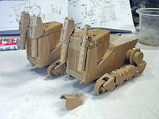 作業が進んで2台分のキャタピラが終わりました。
