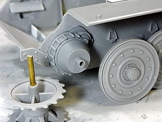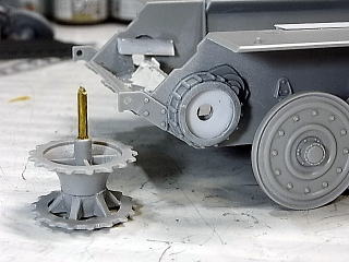 キットパーツの起動輪とぶつかる部分を切り落として整形すれば完了です。