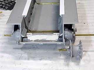 一旦2mm真鍮棒を通して固定用のプラパイプを車体内側にセットします。
