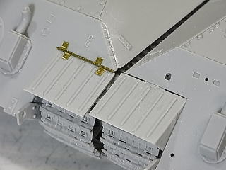 0.5mm真鍮棒とエッチング板の残りでヒンジっぽく改造します。