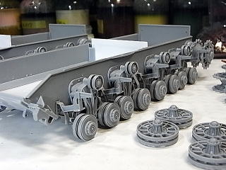 サス本体の厚み分、接地側の転輪が幅広に出来ないので、