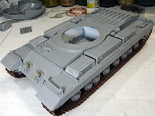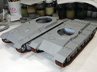 砲塔が付く部分だけは、後からプラ材やパテを詰めて、