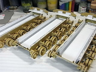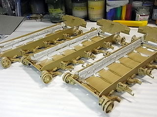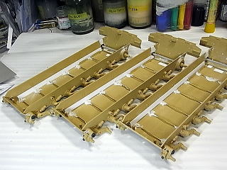 角材と真鍮棒で横の桁を重ね、最後にプラ板で底板をデッチ上げています。