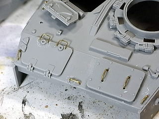 ドイツ戦車の留め具よろしくエッチングパーツで再現しても良いかと思いますが、