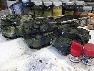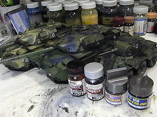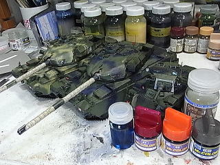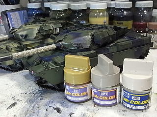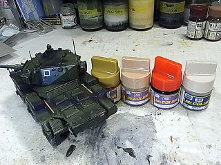 エアブラシによる基本塗装が済んだ所で塗り分け作業に入ります。