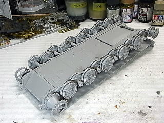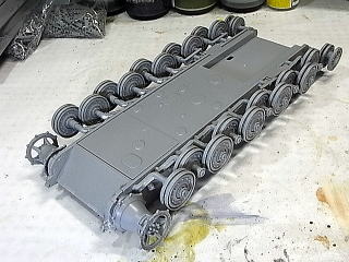 画像の補足説明ですが、キット付属の履帯はベルト式なので、