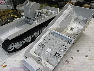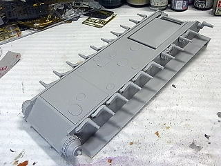 履帯が付いたので車体上下の接着をしていく訳ですが、