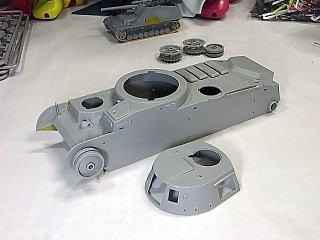 てな所で組立開始ですが、2枚目では車体の上下接着、