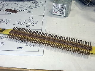 そして一気に連結ピンを接着(コマ数が50なのでピン数は49本ずつ)、