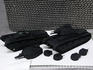 戦車キットのキャタピラはベルト式のものと分割組立式のものが