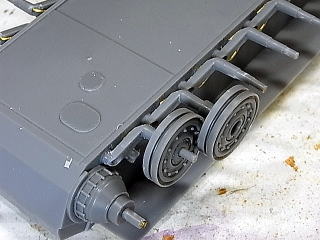余剰パーツ(多分タコムのティーガーII)から起動輪カバーを切り飛ばして、