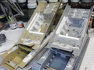 車体上下接着時にスポンソン部が上手く合わなかったり、