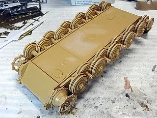 転輪部が付いたので履帯の取付作業に入っておりますが、