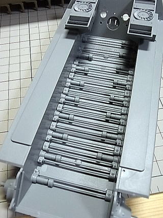 後ろ側の予備キャタピララックをプラパーツで済ませたところ、