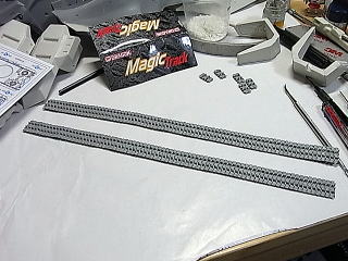 キャタピラの接地面と穴、とラックの板を削ってフィットさせてます。