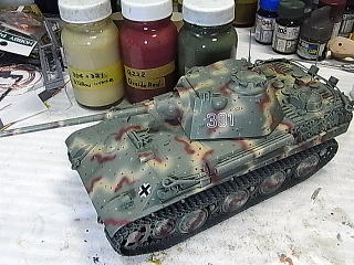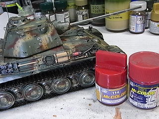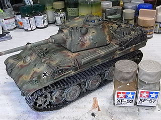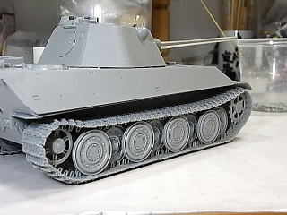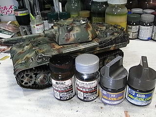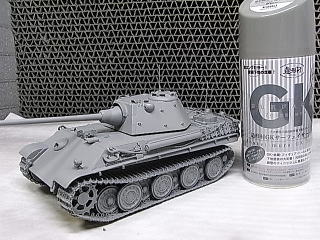 塗り分けの第1段階、履帯部などにジャーマングレイで