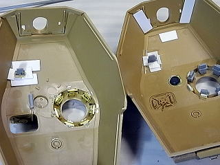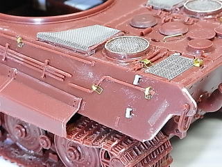 車長ハッチのヒンジ部に有るガード板とかですね、結構面倒でした…。