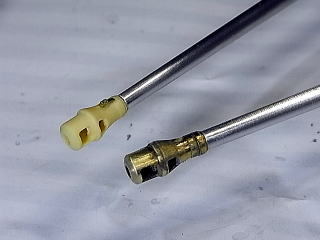 0.3mm真鍮棒(少し長めに作っておいて接着後に切り揃えます)での自作です。