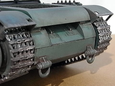 但し車体側面板はキャタピラが巻き上げる泥・土・砂、