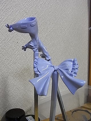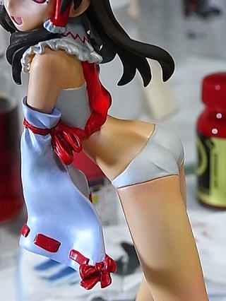 リボンはフリル部分をマスキングして赤を吹きますが…。