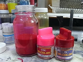 更にパールピンクと蛍光レッド(171)を吹いてます。