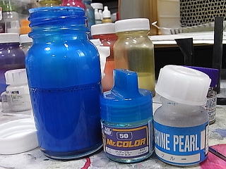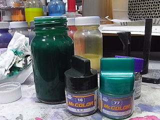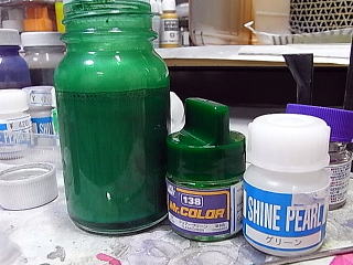 残った塗料にクリアー緑(138)とパール緑(ボークス製)を