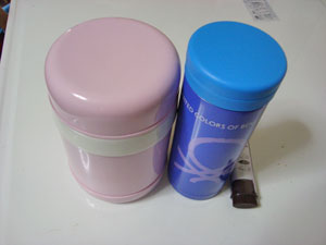 そいえば、昨日は昼間から体のキレがなく、導尿の際に、セルフカテの導尿に使う部分をトイレの中に・・ぽちゃん・・・・失敗失敗。 いろいろ 2008年12月10日 職員食堂では、他の人の食べ具合をついつい観察してしまいます。昨日、目の前でカルテ庫のちょっと肥満気味の方が、きしめんとオニギリを食べていました。それを食べ終わると、お菓子、そして最後に大福が、ぱくっと・・・口の中に・・・私には放り込まれた様に見えました。お腹に入って行ったものは大量です。それだけ肉を蓄えていて、更にそこまで食べるのか!!放り込まれた大福がいつまでも私の頭の中に残り、こんな怒りのような感情となっています。 食べ物は、冷めてしまうと固くなってしまいます。 そこで、お弁当様に、最近また復活してきたランチジャーを買いました。 ![]()
