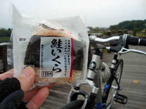 秋分の日の今日は、曇りで秋の強い日差し無し、そして風も無し。ということで、久しぶりに乗ってきましたよ。 ![]() このベンチで一休みし、ここからはパワー不足の為CBを引いて。 ![]() かなり心拍数上がって、維摩池に到着。 途中セブンイレブンで、水を購入、その際に、おにぎり全品100円!につられてついつい「おにぎり」を。選んだのは「鮭いくら」。ここでこれを食べることができたら、更に幸せ・・・。が、勿論、ウエストポーチに入れました。 ![]() 一応、写真撮影。