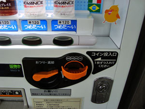 この自販機ですが、コイン投入口の形状に関して私は気がついていませんでした。 ![]() 下の写真が、先日の福祉住環境セミナーでお目にかかった、Tさんが手が不自由だった時にこの投入口だとお金を落としてしまう事が少ないと話て下さったタイプ。コインを縦にもって入れる必要がなく、横に流す様に置けばいいのです。