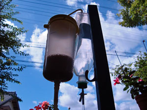 その後、点滴をつなぐが起きている事が困難。一日中とろとろとろとろと眠ること眠ること。 自覚はないのですが、彼曰く、点滴が体に廻っていない状態の私は、夏の午後のプランタの植物のごとくしなしなで、冗談やテンポのある会話ができにくくなっているそうです。 プランタの植物に水を与えると生き返ってくるのと同様に、二本目の点滴が体に入り終わったあたりから復活してくるそうです。