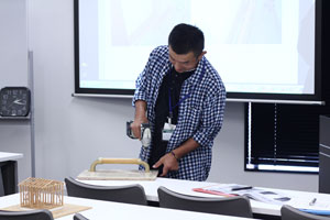 ![]() ピピピという音で知らせてくれます。 手すりをつけるところを実演してくださっている様子です。